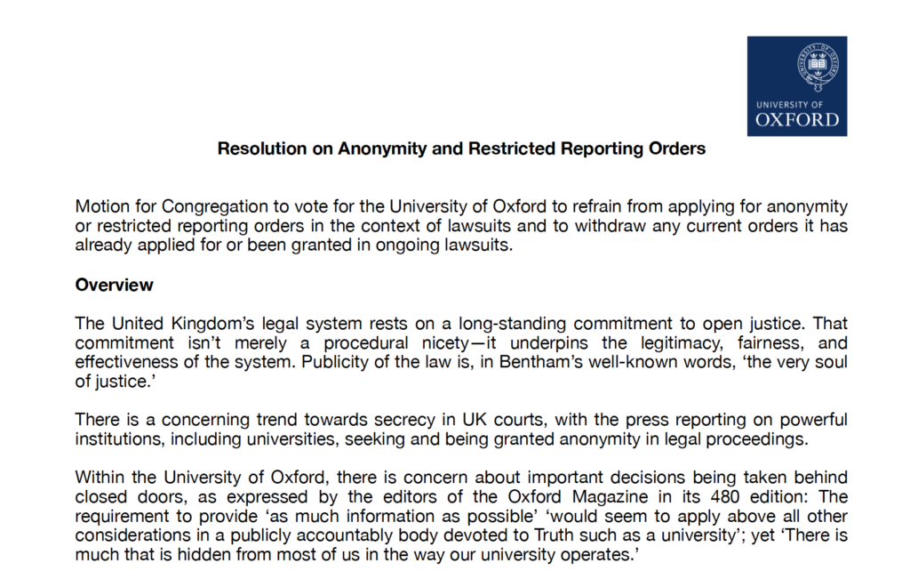 As another article appears on sexual harassment in Oxford in The Times, we learn that Oxford academics are now putting a motion to Congregation on the secrecy about bullying and harassment, protesting the use of gagging orders, non-disclosure agreements and corrupt investigation practices.