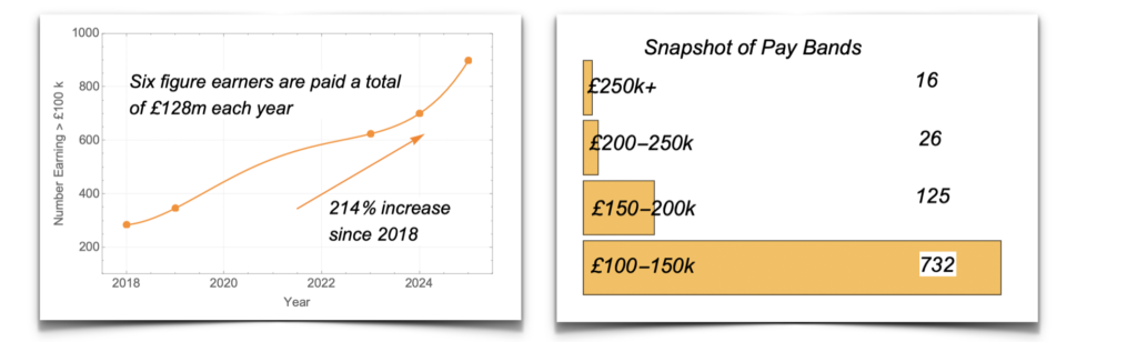 - The total amount paid to senior figures earning in excess of £150,000 has increased from £7 million in 2019 to £37 million in 2025.